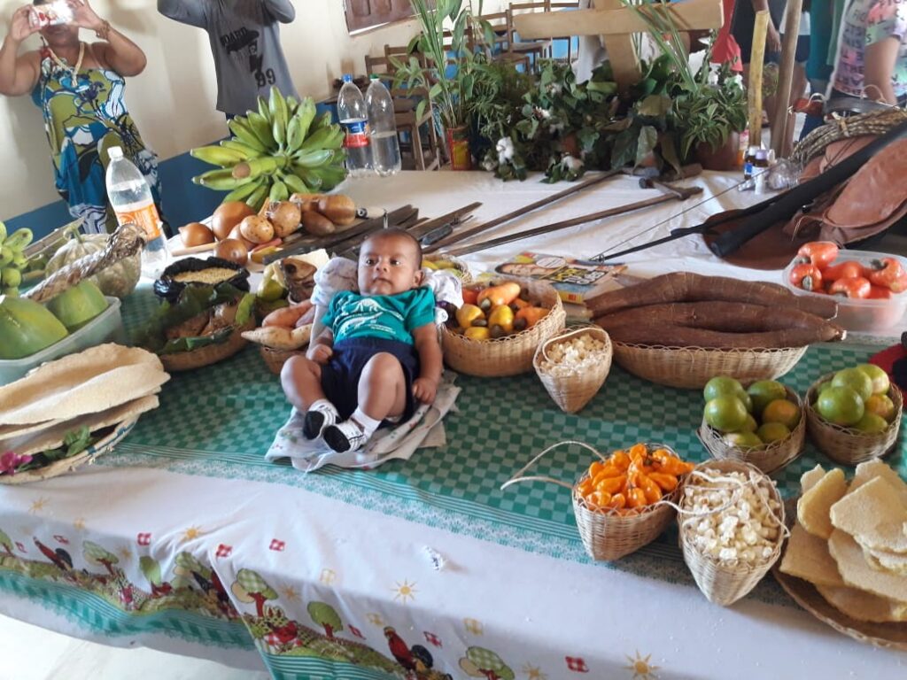 No almoço, além de saciar a fome, confraternizar e celebrar a inauguração da igreja, o povo louvou e agradeceu a todos que, com seus trabalhos nas roças, criação de gado (Projeto “uma vaca para o Índio”), galinhas, porcos e peixe produzem o suficiente para o seu sustento.