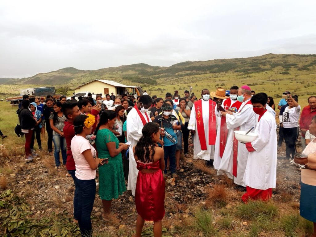 No dia 27 algo inédito aconteceu. Depois de mais de 20 anos, a comunidade na sede do município Uiramutã pode celebrar uma missa com a bênção do terreno da igreja em construção. O tuxaua Jacir de Souza lembrou que, a última missa nem terminou. Isso por que, o Padre Luciano Stefanini, IMC, teve que escapar pela janela do fundo do presbitério para fugir dos pistoleiros, garimpeiros e fazendeiros. Na ocasião, as mulheres presentes barram a entrada da igreja impedindo a ação do grupo enquanto o padre fugia. Mais tarde, a igreja foi derrubada e nunca mais houve celebração no local.
