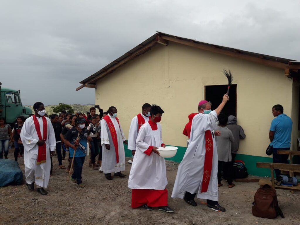 As mulheres e crianças conduziram o Bispo até a Gruta da Nossa Senhora Consolata em frente à igreja. Antes da bênção, a oração do povo para o bispo e deste para o povo foi para que a Mãe de Jesus cuide dos seus filhos e filhas na vida e na missão.