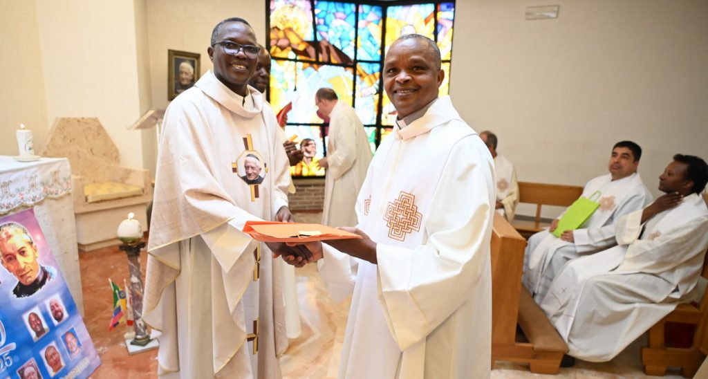 O Superior Geral, padre James Lengarin, e o padre Michael Wamunyu durante o G25, maio de 2025.