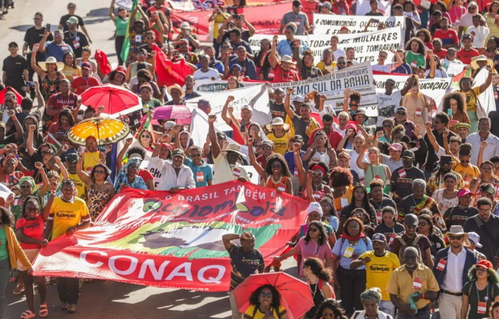 Ao comentar sobre a unidade das organizações na luta contra o racismo e a discriminação no Brasil, Maria Aparecida Ribeiro de Sousa, coordenadora nacional da CONAQ onde também é coordenadora do Coletivo de Mulheres, explica que “existem muitas pautas comuns aos quilombolas e outros movimentos por terra e direitos, como o indígena. Na Amazônia, por exemplo, existem quilombos reconhecidos pelo governo, símbolos de identidade e resistência compartilhados por povos africanos escravizados por colonos e populações indígenas locais. É claro que nossas reivindicações diferem daquelas dos movimentos que surgem e lutam nas áreas urbanas, no entanto, quando chega a hora de ir às ruas, encontramos um ponto em comum e marchamos juntos”, conclui.