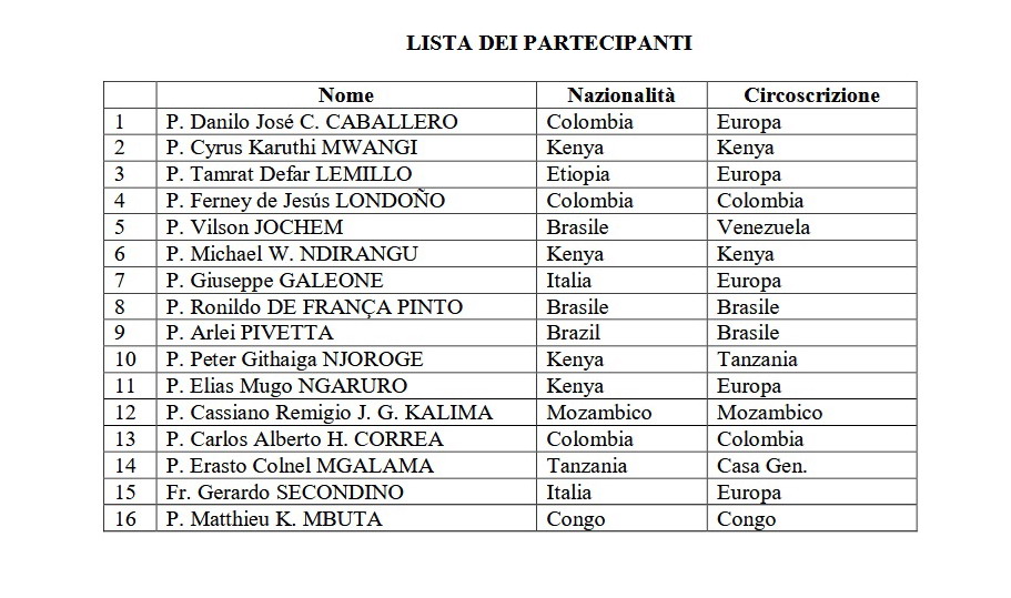 A sede é a Casa Geral com a participação de 16 missionários (15 padres e 1 irmão) provenientes de África, América e Europa.