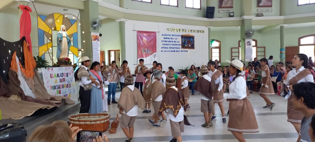 Suenan los bombos, las flautas y las bandas interpretan y acompañan, con sus melodías organizadas armoniosamente, las coreografías ensayadas durante días, meses y años, con la participación jóvenes, adolescentes y niños, animados y coordinados por adultos.