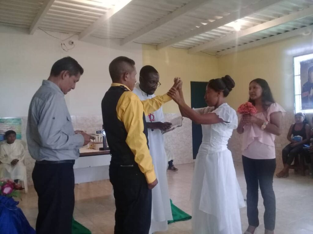 Llegando a Tucupita, fue acogido por el padre Chrispine Okello, misionero de la Consolata que se preparaba para ir de vacaciones a Kenia. Estuve una semana con él, aprendiendo cómo funcionaba la casa Dani Consolata (el Centro de animación misionera y pastoral indígena) y las actividades que habría que realizar en los meses de diciembre y enero del año 2020. Durante este tiempo en la escuela del padre Chrispine, tuve la dicha de participar en una boda, la primera en Dani Consolata, de una pareja indígena, apenas un día antes que el padre viajara. Me dio regocijo compartir la alegría de aquella familia.