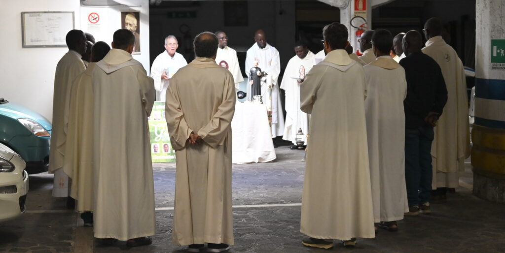 La Misa de clausura del curso, el 27 de septiembre, fue presidida por el Superior General, Padre James Lengarin. La celebración comenzó en el estacionamiento subterráneo de la Casa General, recordando el mundo de las tinieblas. Cada persona fue invitada a encender una vela del Cirio Pascual, simbolizando que los misioneros que celebraban 25 años de Sacerdocio o Vida Religiosa han pasado del mundo de las tinieblas al mundo de la luz que es el propio Cristo.