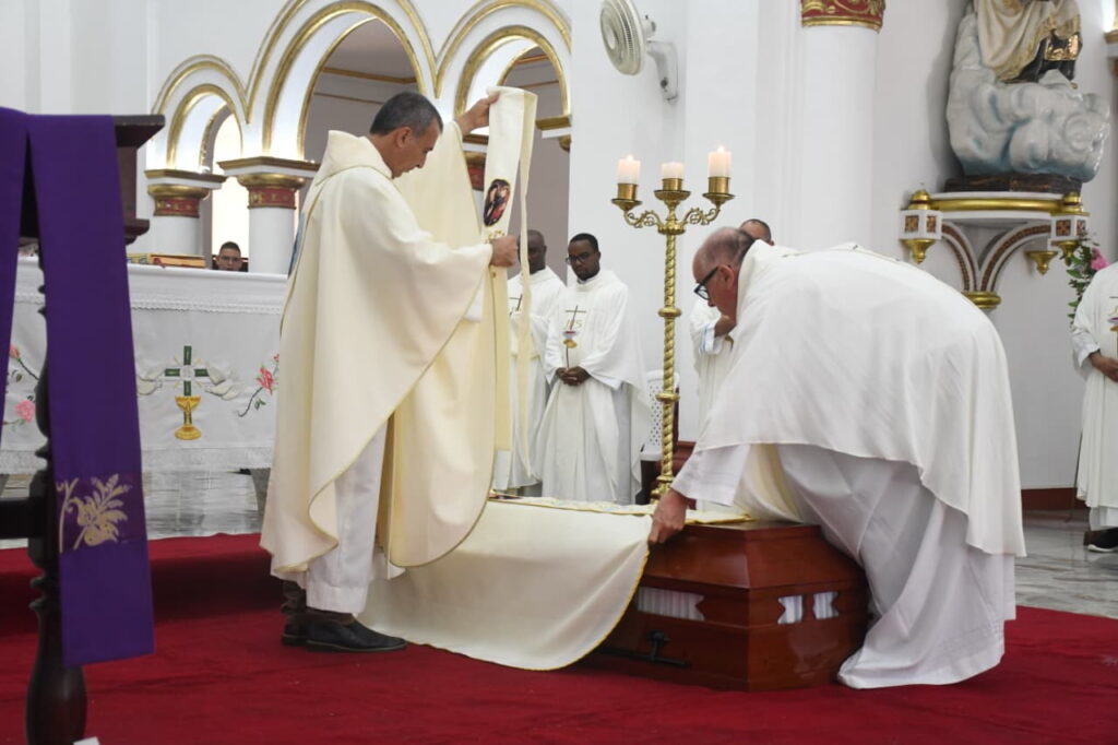 Padre Juan Pablo de los Ríos y padre Angelo Casadei durante un momento del funeral.
