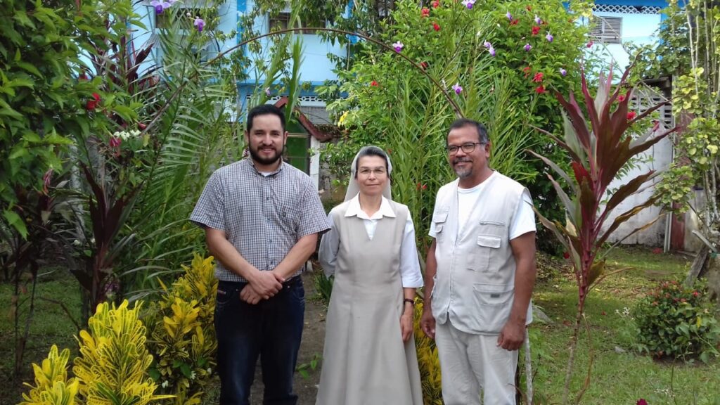 Hoy, 21 de marzo de 2021, en el “puente de San José” o feriado integrado, con el apoyo decidido de la Hermana Gloria Liliana Franco Echeverri odn, presidenta de la Confederación Caribeña y Latinoamericana de Religiosas/os – CLAR, el P. Eduardo Reyes, Misionero de la Consolata, Párroco de la Tagua, recibe a los otros integrantes: María del Carmen Restrepo, Religiosa Carmelita Misionera, Jonathan Castañeda, Sacerdote Carmelita y Liliana Cruz, Religiosa argentina de la Compañía de María.