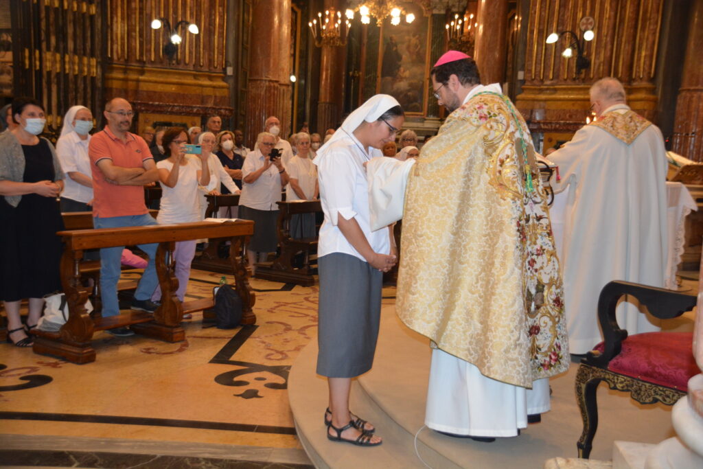Durante la misa, la Han. Francesca Allasia, MC, recibió del Obispo Giorgio Marengo el mandato misionero para Mongolia. El Obispo, que también había sido enviado a Mongolia en el mismo Santuario hace 19 años, entregó el crucifijo a la misionera e invitó a la Sra. Baigalmaa Namsrai, una madre de Mongolia que participó a la misa con su hija, a dirigir palabras de bienvenida a la Han. Francesca, que pronto se unirá al grupo de ocho Hermanas MC y cuatro sacerdotes IMC en la misión que comenzó en ese país en 2003.