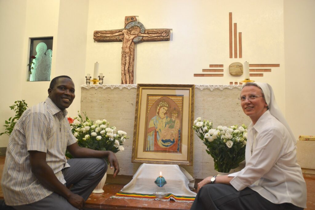 La Hermana Simona y el P. James Lengarín, actual superior de los Misioneros de la Consolata