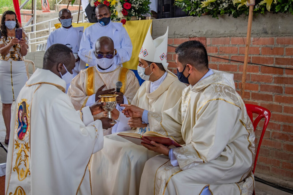 El equipo misionero de la Consolata de Toribío Cauca – Colombia, en la fecha 27 de septiembre del 2020 día del Señor, con un motivo muy especial después de un camino formativo y perseverancia, el Diácono Francis Muchina Ngungi, misionero de la Consolata, hoy dice su sí definitivamente en vivir su vida misionera como Sacerdote para Siempre, según el rito de Melquisedec.