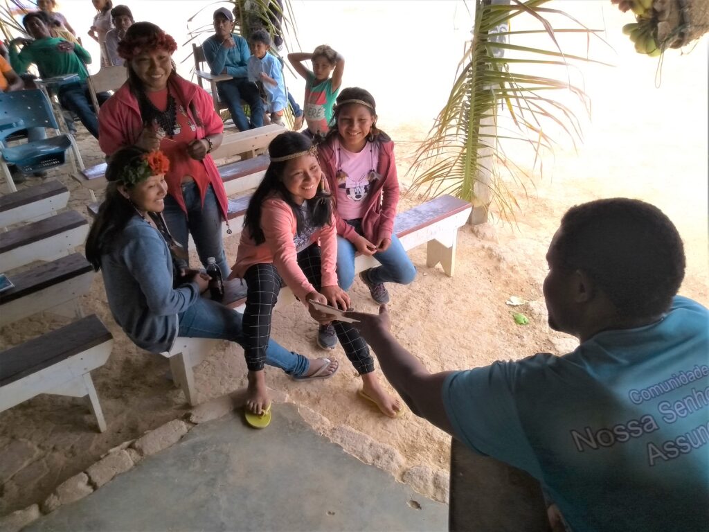 Pero lo que más llama la atención es la humildad y la sencillez de su gente. Recibe con canto y danza a los misioneros, con vestidos, instrumentos y comidas típicas. Las autoridades saludan una por una a quienes reconocen como amigos y aliados. Cada persona que habla con quien recién llega explica la historia de la comunidad y cosas sencillas de su idioma. El portugués reina en las conversaciones de niños y jóvenes, pero en los mayores de 30 el macuxí vive y resiste. Misioneros y autoridades decidieron hacer un esfuerzo constante, en comunidad, para aprender y conversar en la lengua propia, al menos una vez por semana, con profesores surgidos de entre los adultos mismos y en clases donde se asegure la presencia de niños y jóvenes. Alguien menor que hable macuxí con naturalidad es un tesoro escaso en las comunidades, casi siempre fruto del esmero de alguna abuela.