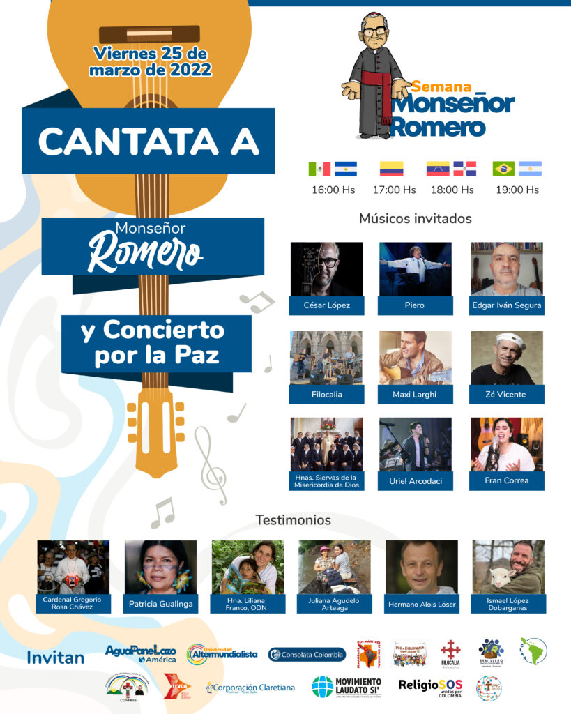 En el marco de la semana artistas de Latinoamérica se unen para cantar y orar por la paz en nuestro continente y el mundo, acogiendo la invitación del Papa Francisco a orar por la paz el próximo viernes. Se ha preparado la Cantata a Monseñor Romero y Concierto por la Paz de forma virtual.