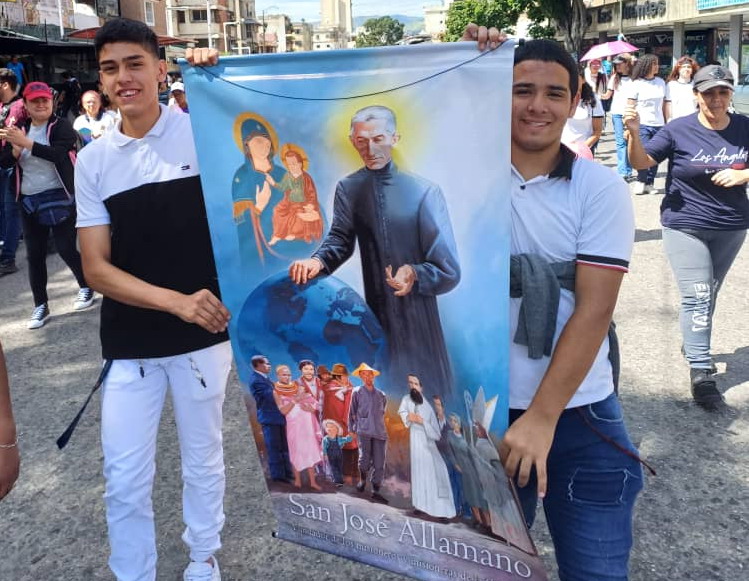 Debemos resaltar que, antes de la misa, tuvimos la XXII Caminata Juvenil Misionera, la cual se realiza todos los años durante el mes de las misiones, y en esta oportunidad se desplazó por las calles aledañas, hasta el templo y cuyo responsable principal es la familia Consolata en colaboración con la OMP y la Pastoral Juvenil de Caracas. Para ese evento se convocan jóvenes de los colegios, parroquias, movimientos juveniles para hacer animación misionera y hacernos más conscientes del compromiso adquirido en el bautismo, este año con especial énfasis en la persona de San José Allamano, misionero por excelencia.