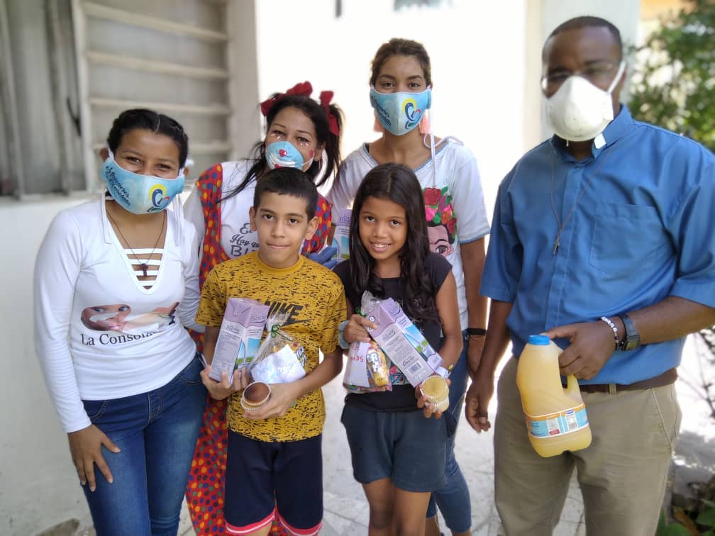 Por lo tanto, el domingo 19 de julio, se logró promover la propuesta de visitarlos en sus hogares y sorprender a los niños y niñas misioneros que cada domingo asistían con alegría y entusiasmo a los encuentros. Todo esto logrado gracias a la colaboración algunas empresas privadas, benefactores y amigos, que desde su generosidad hicieron posible esta actividad, la cual se desarrolló a través de la sorpresiva llegada de servidores de la animación misionera en compañía del padre Nebyu Elías, IMC, Superior Delegado en Venezuela, quien actualmente se encuentra a cargo del CAM. Todos juntos llegaron a la puerta de cada vivienda, para hacerles entrega de un obsequio “cotillón” (paquete con golosinas, bebidas y juguete), cumpliendo con el protocolo de bioseguridad establecido por la OMS en el combate al Covid-19.